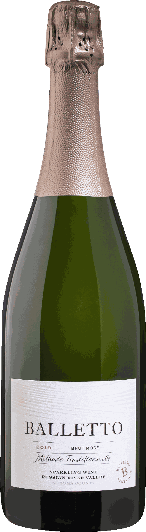 The grapes for this Brut Rosé—60% Pinot Noir and 40% Chardonnay—were grown on Balletto’s estate Russian River Valley vineyards. The harvest was gently whole-cluster pressed and fermented in both stainless steel (Pinot Noir) and old neutral oak (Chardonnay). ¬The Chardonnay was sent through 100 percent malolactic fermentation for added depth and texture.